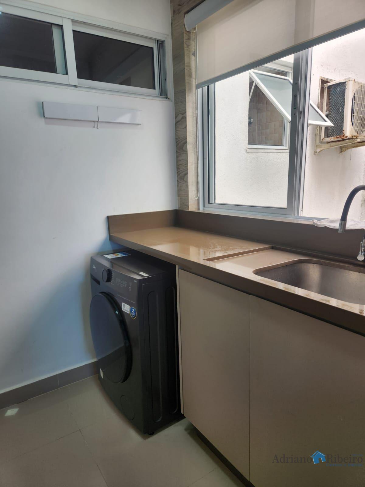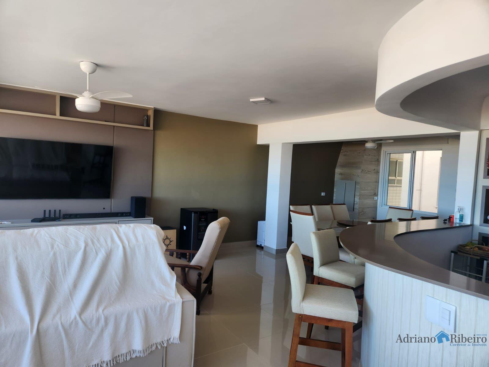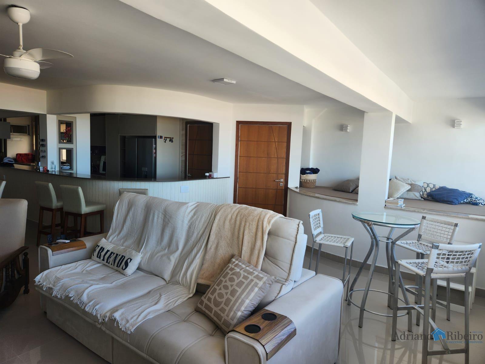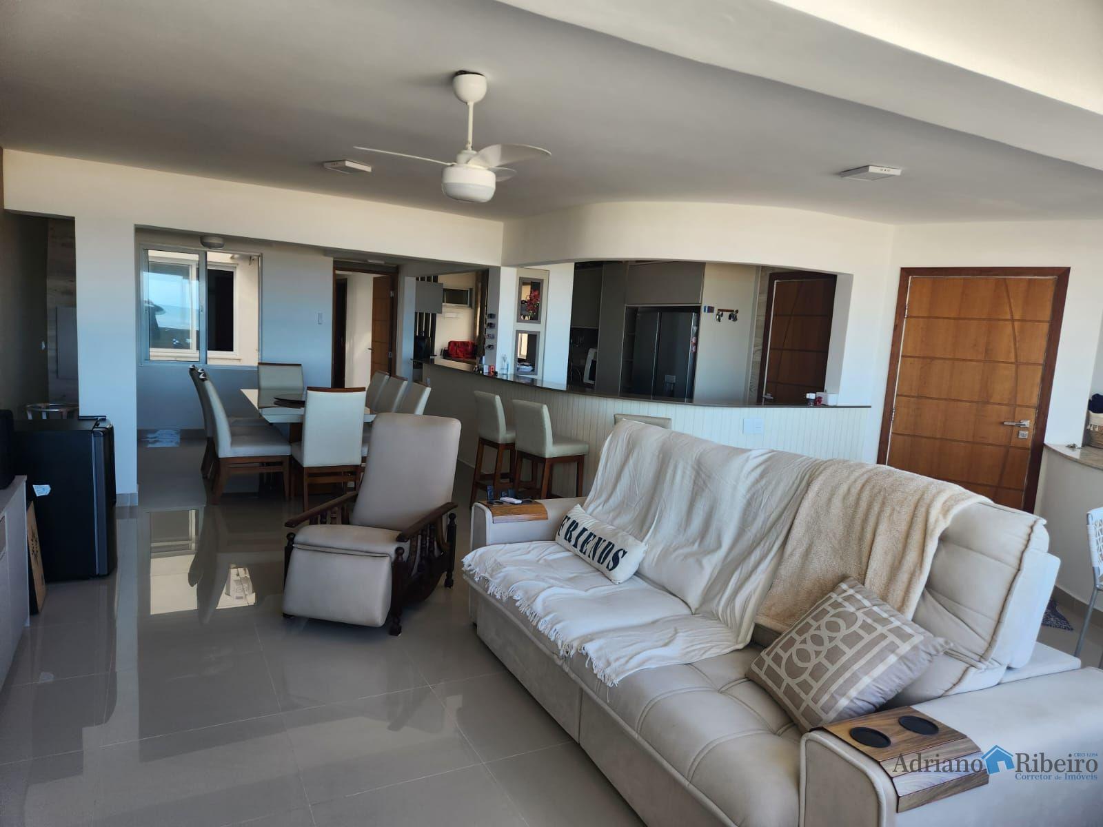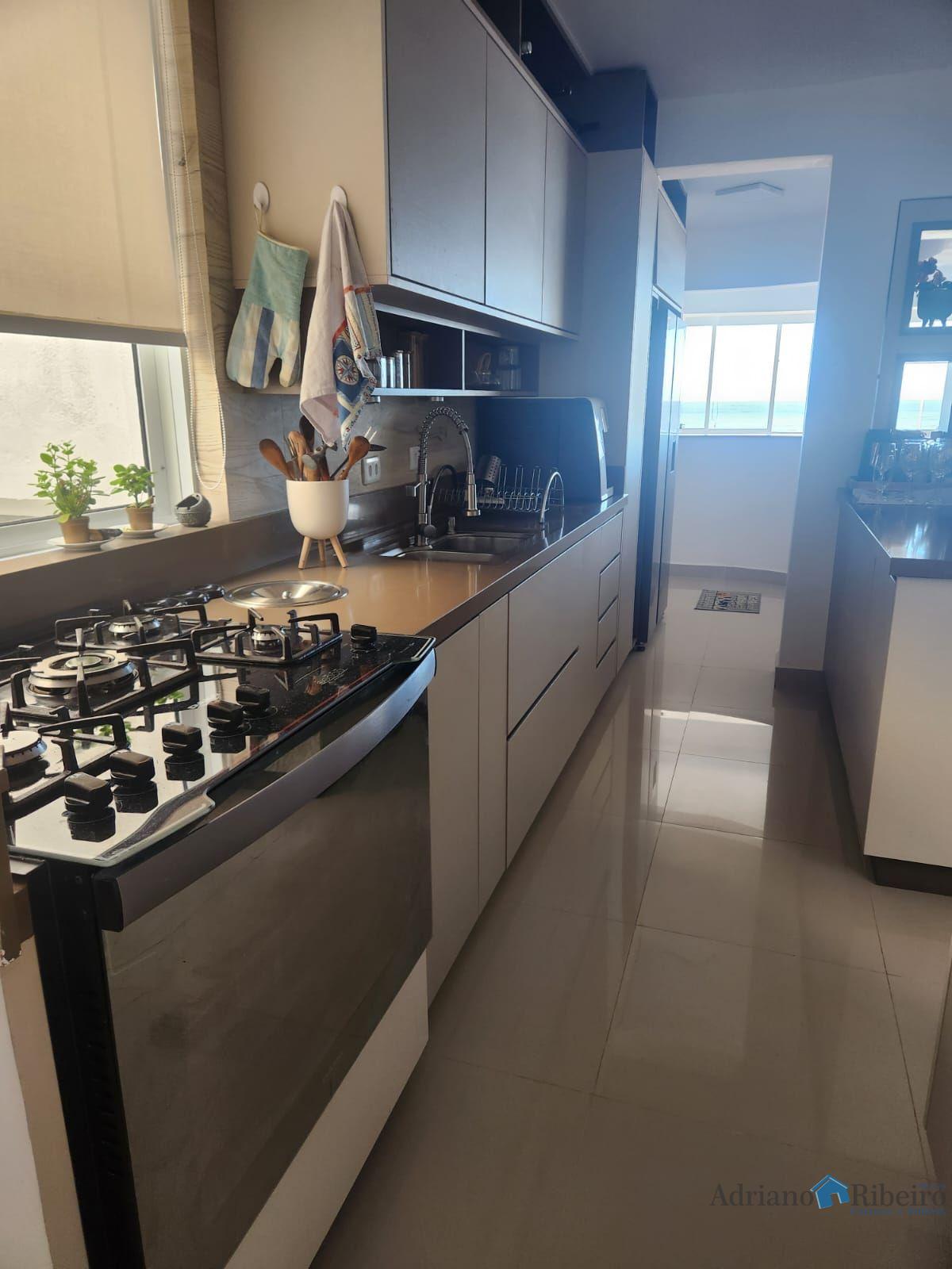Sala ampla com churrasqueira e vista definitiva pro mar. Ropeiro, lavabo,cozinha em conceito aberto e lavanderia .