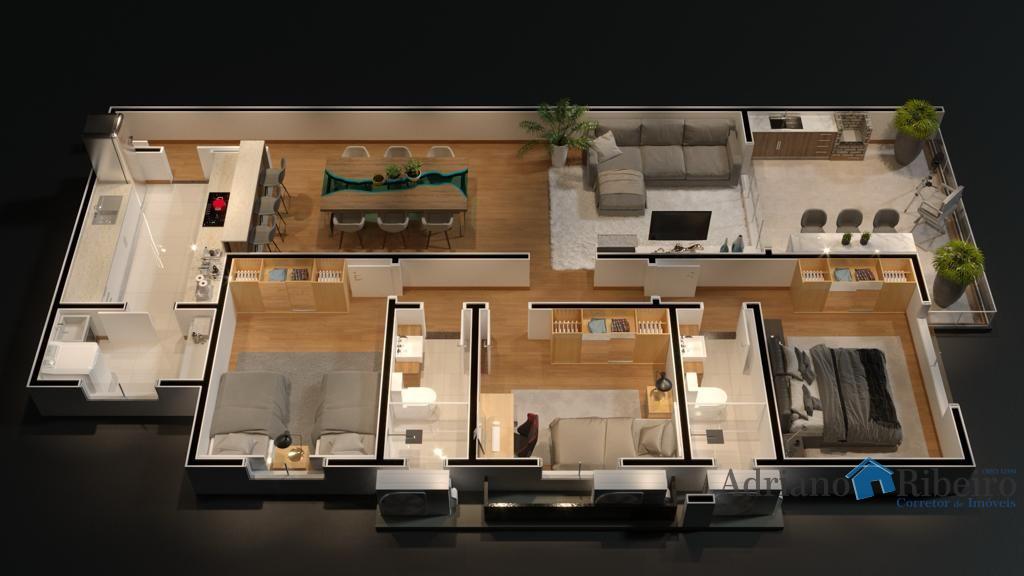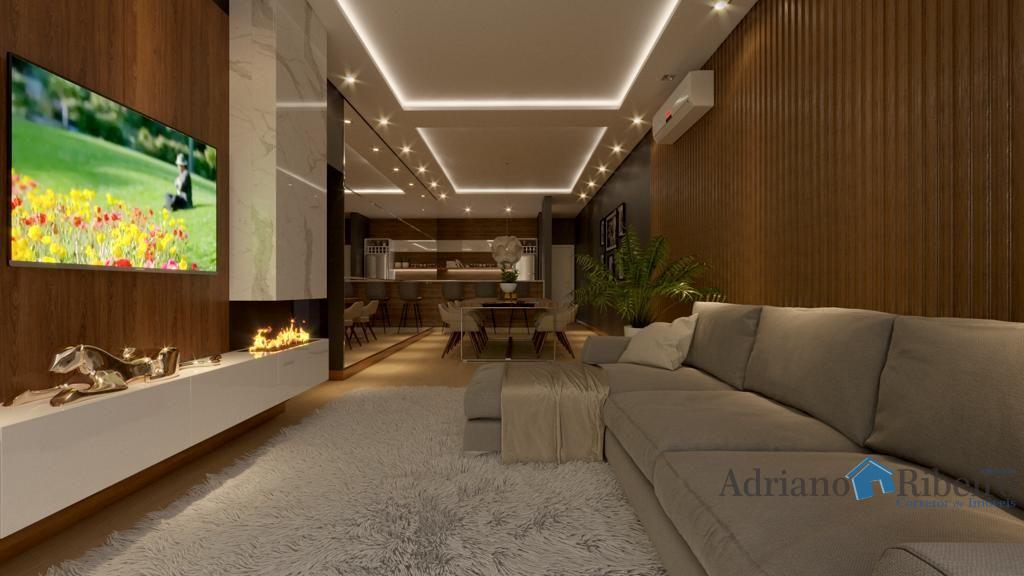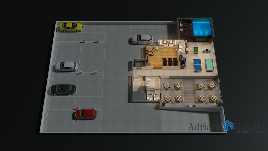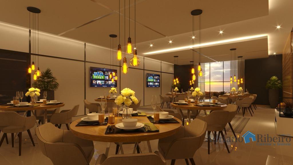 A 180 metros da praia varanda gourmet, salão de jogos, salão de festas, área de lazer, academia equipada, piscina social, dupla vaga de garagem.