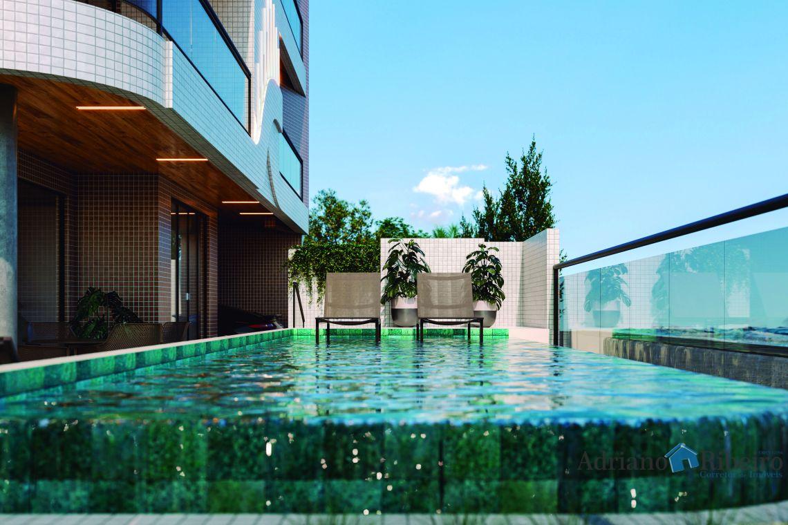 Prédio frente mar, em terreno de esquina, com unidades tipo e cobertura duplex.