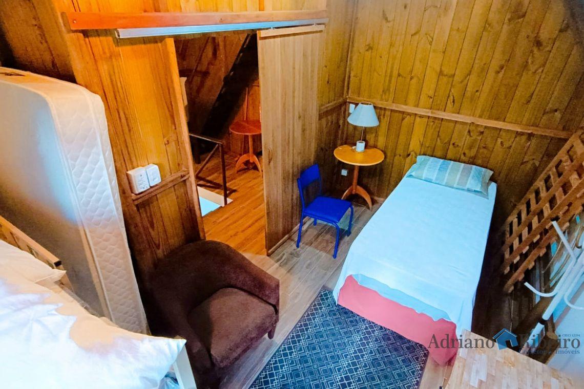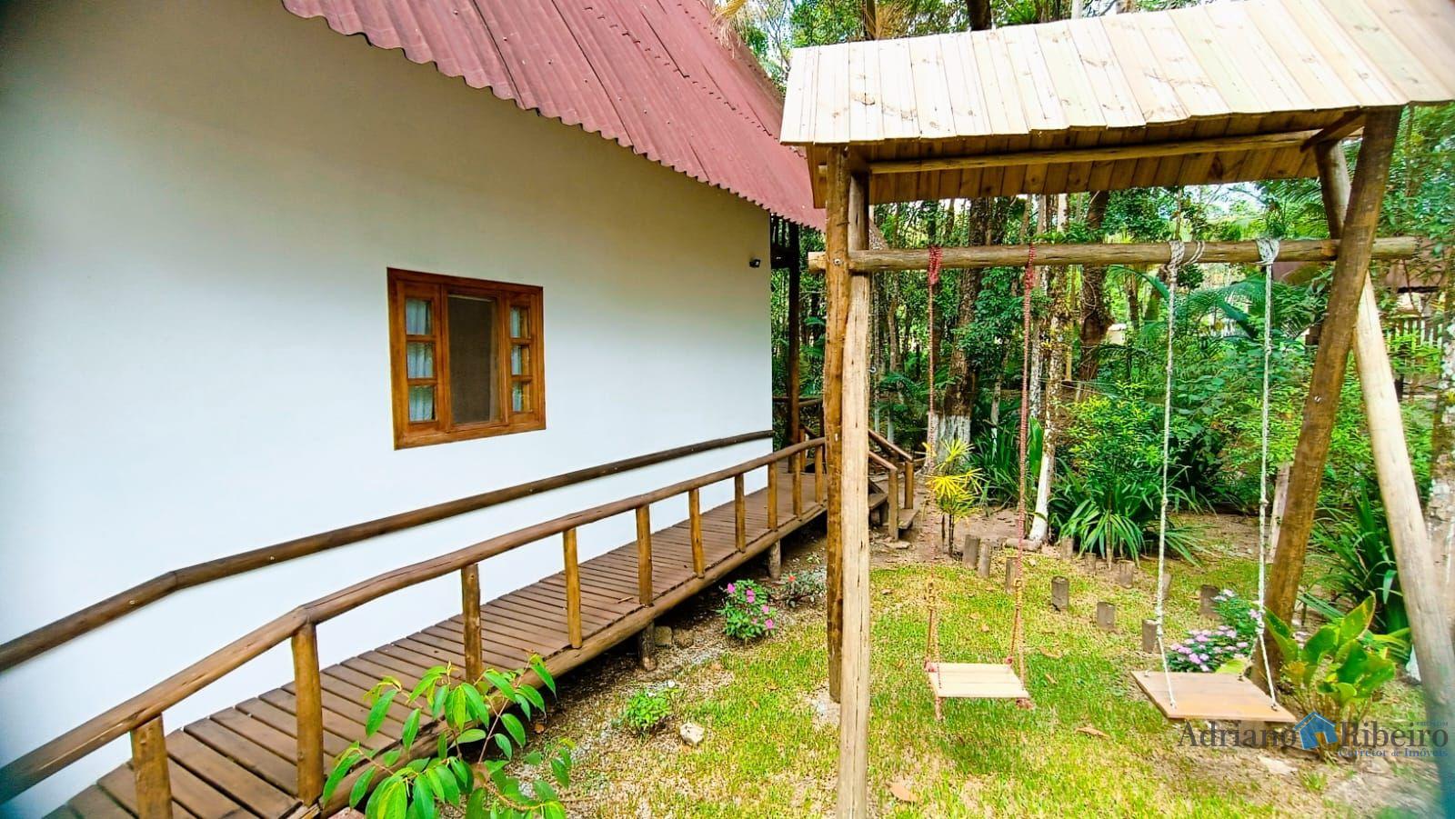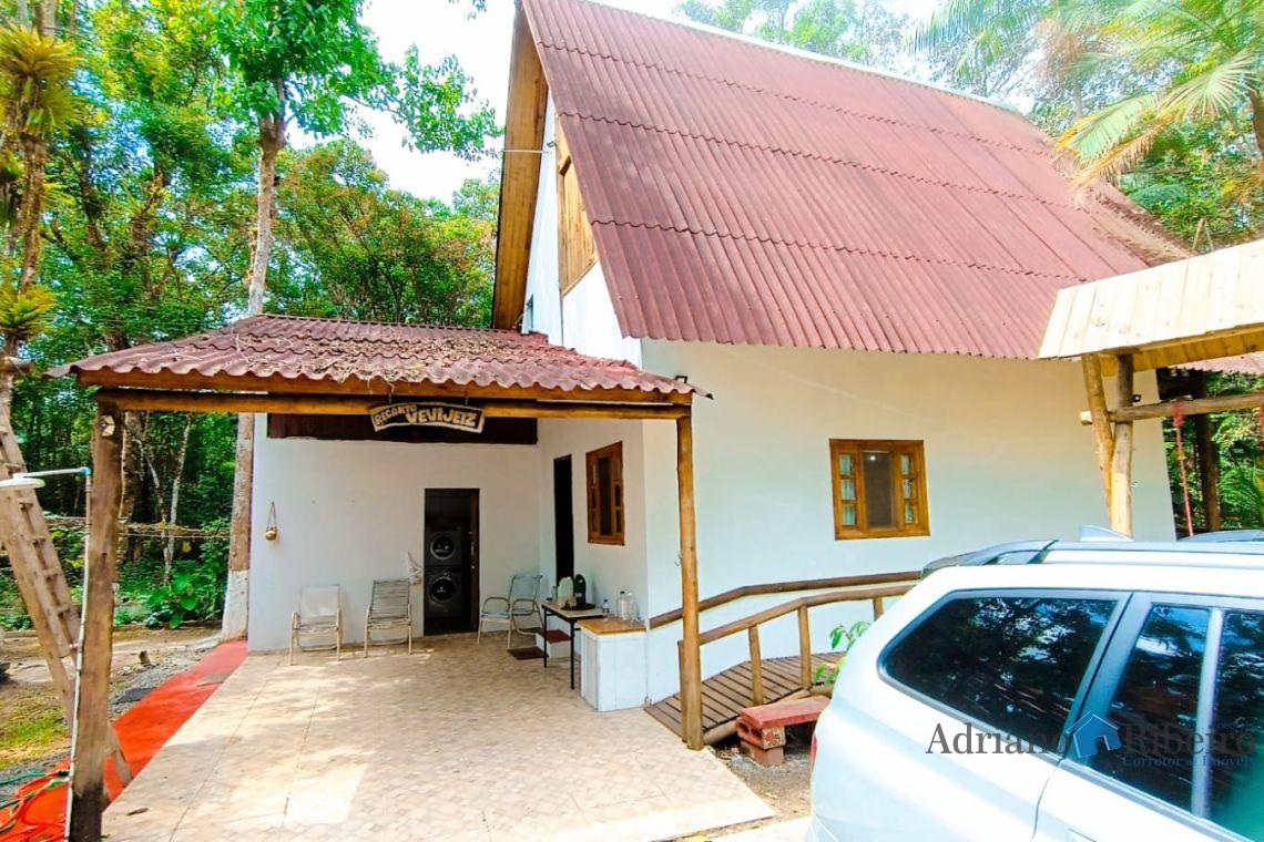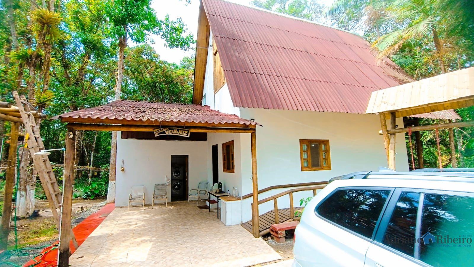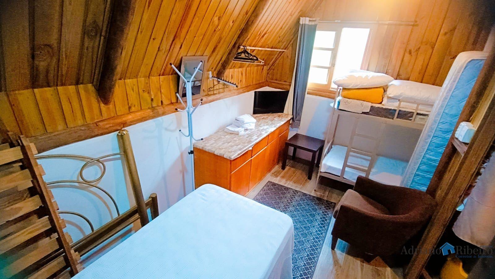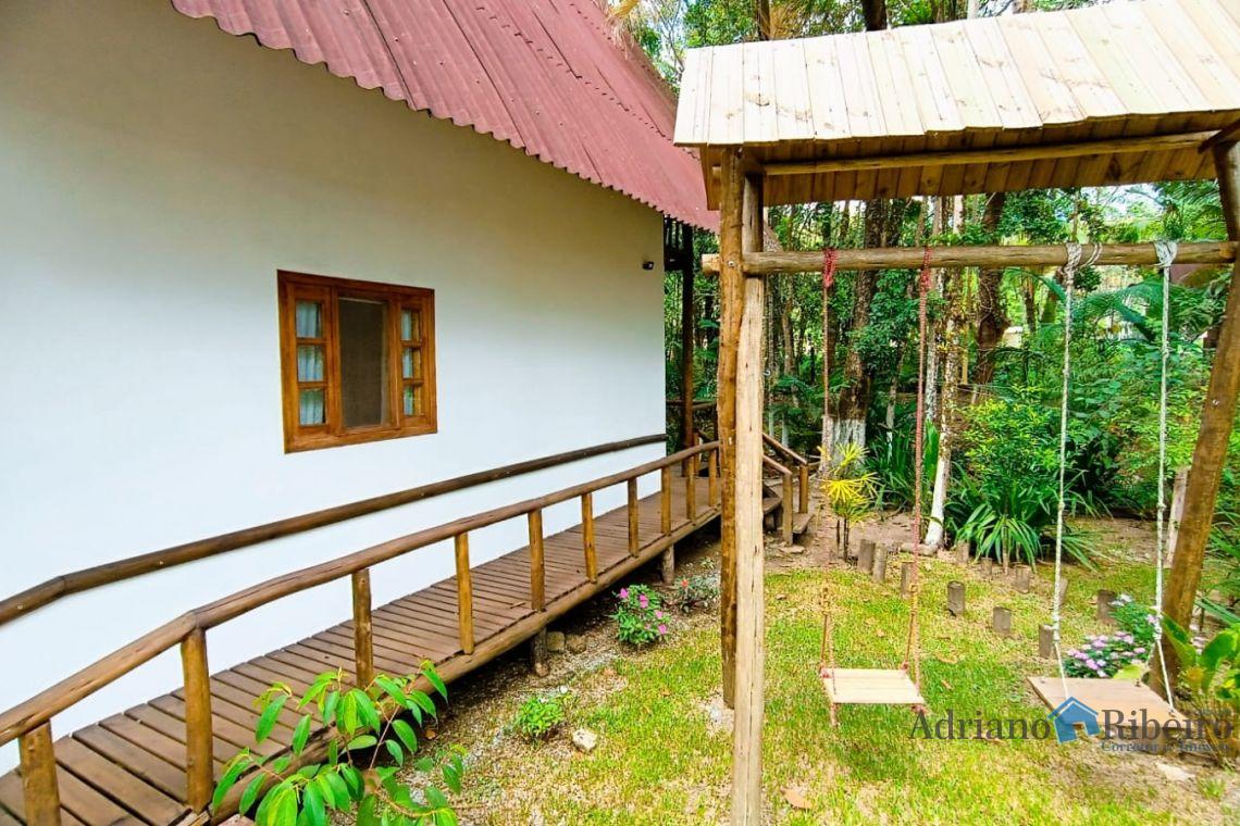 A propriedade conta com uma casa de alvenaria/mista com 180 m2, estilo chalé distribuída da seguinte forma: