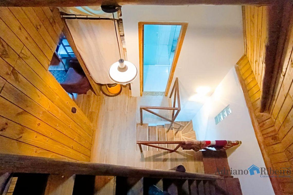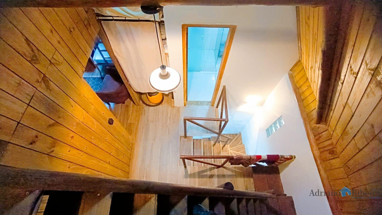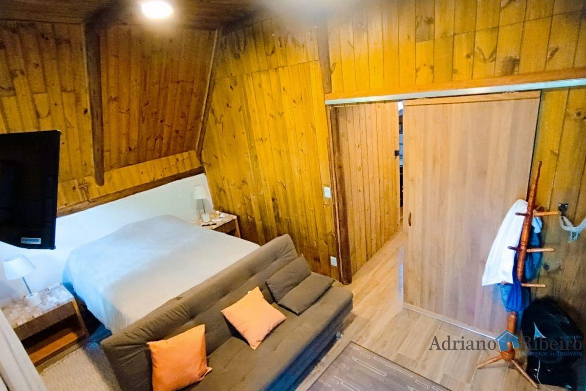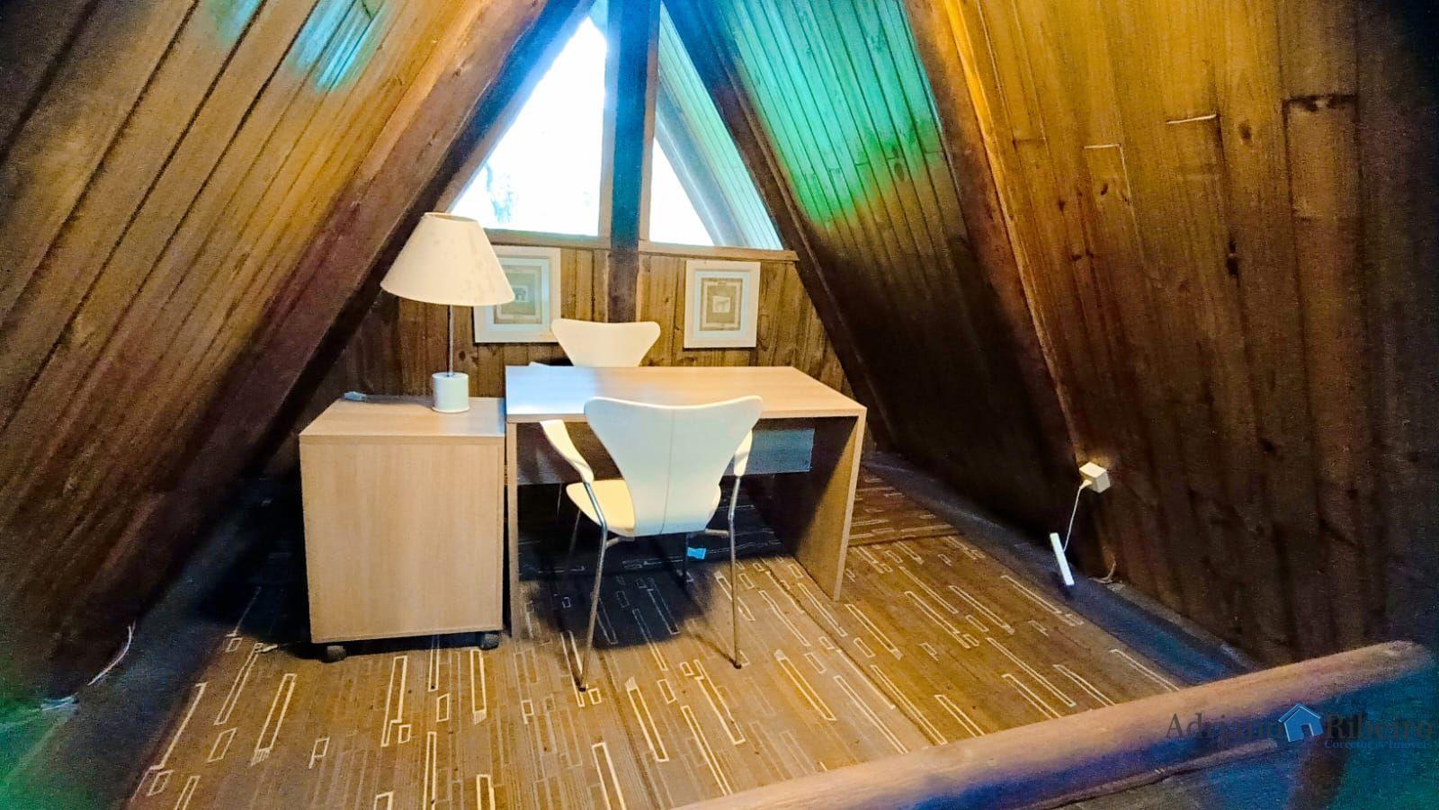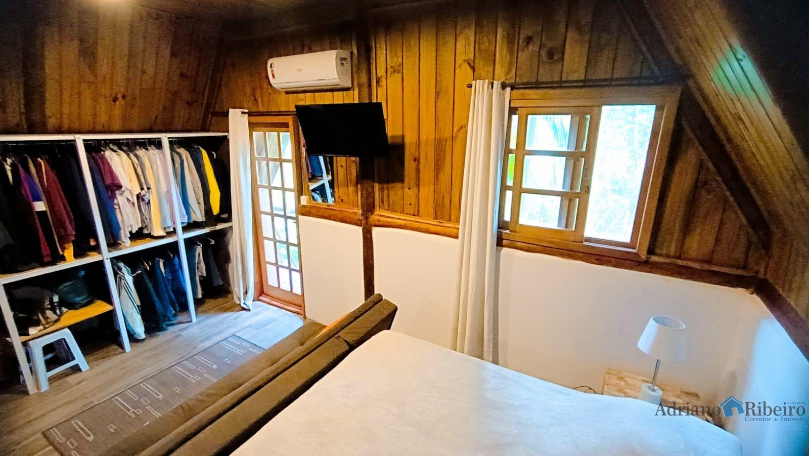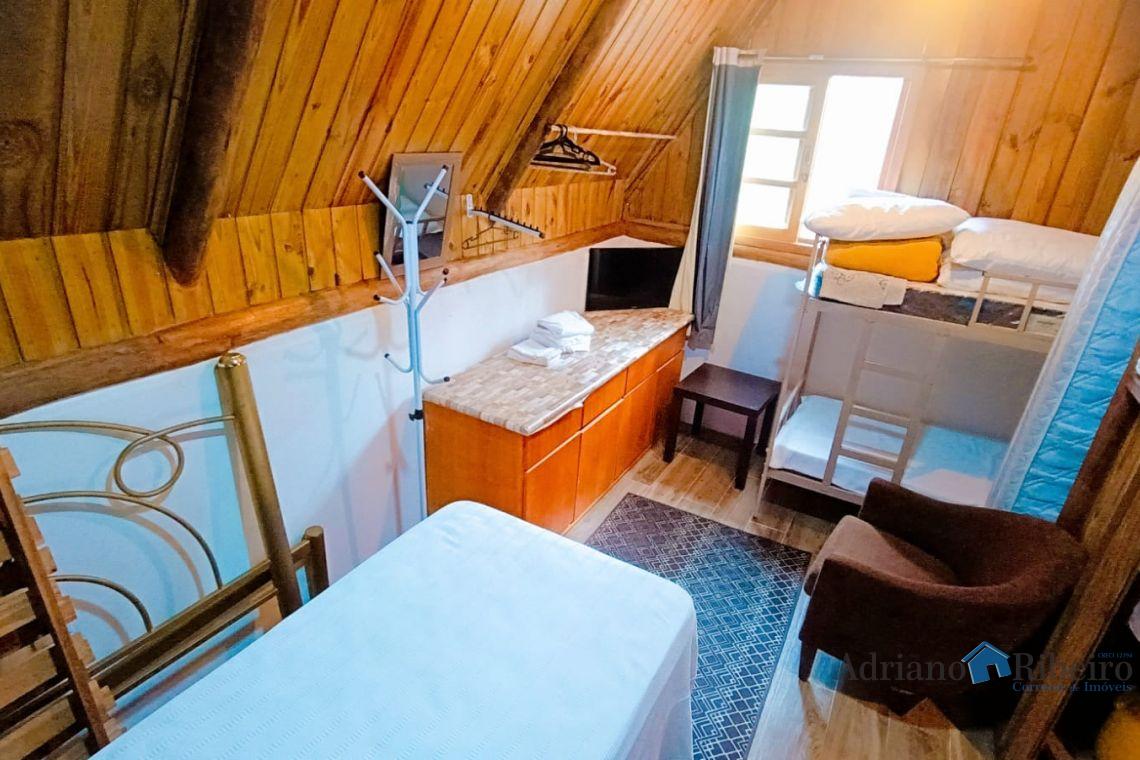 A propriedade conta com uma casa de alvenaria/mista com 180 m2, estilo chalé distribuída da seguinte forma: